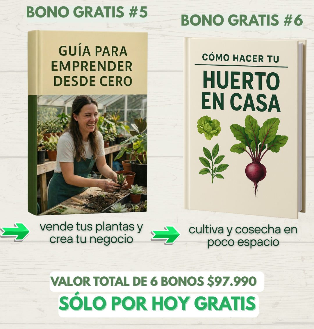 Absolutamente 💚. Aprenderás a multiplicar tus plantas con éxito y podrás empezar tu propio mini-emprendimiento verde si lo deseas.